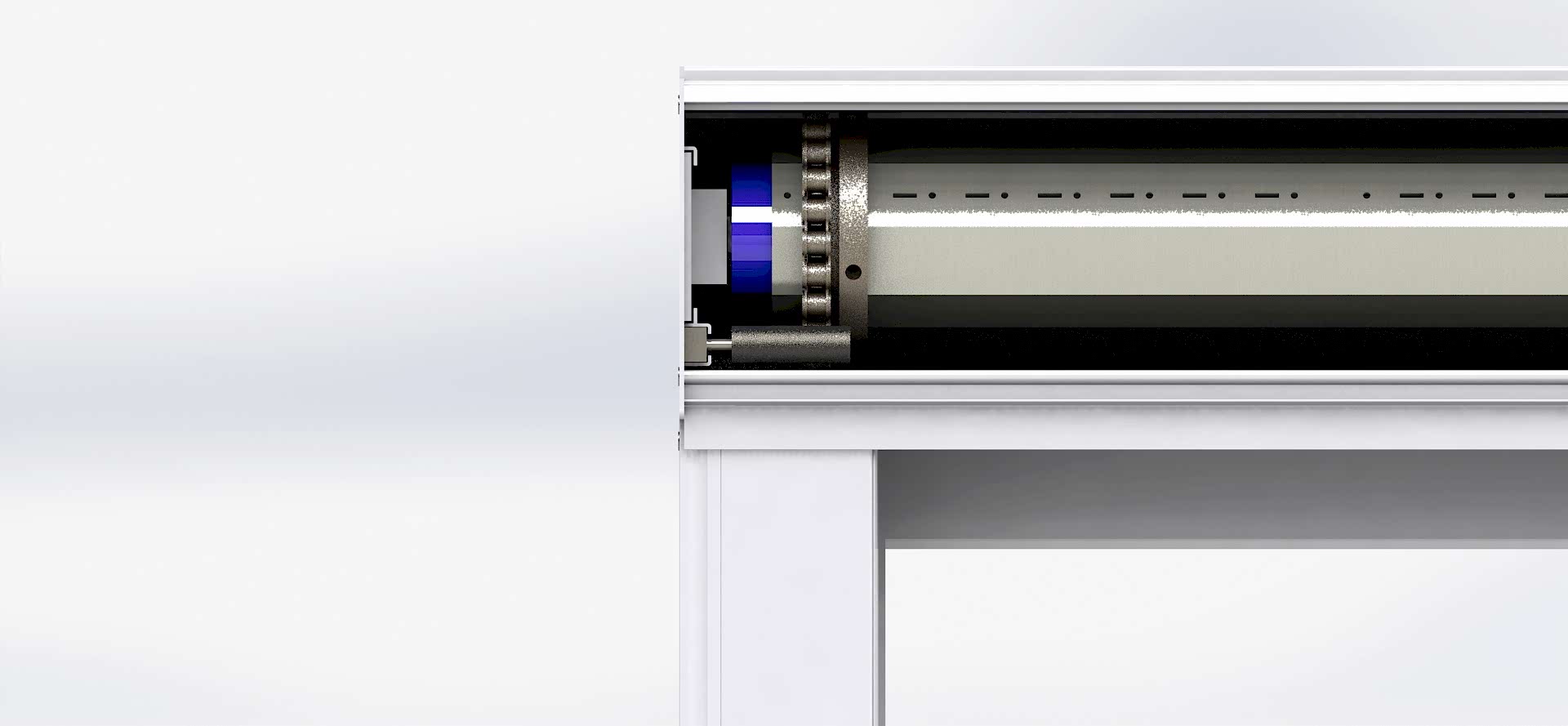 Panellerin yukarıya toplanmasında taşıyıcı görevi gören çelik alaşımlı zincir ve dişli mekanizma.