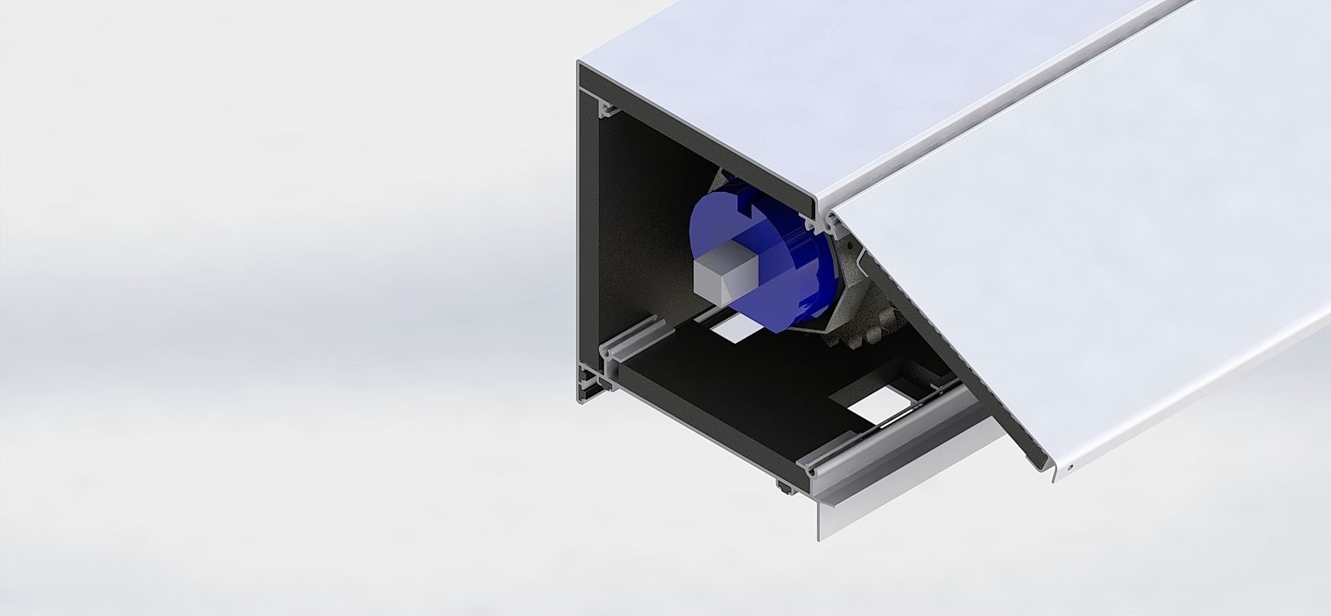 Sistem çalışma şekli; Alt panelde bulunan yan profillere bağlı zincir veya kayış mekanizmasının üst kutu motor sistemine bağlanarak, kumandasında bulunan komut düğmeleri ile aşağı veya yukarıya hareketi açılıp kapanır.
